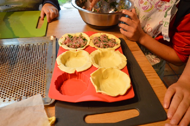 Rillette de Saumon et ses Gardes feuilletées au Sésame noir/ Pamplemousse surprise aux Crevettes/ Boulette de Bœuf à la Mimolette/ Gratin de Ravioles Courgettes et Comté/ Clafoutis d'automne et Sauce Chocolat